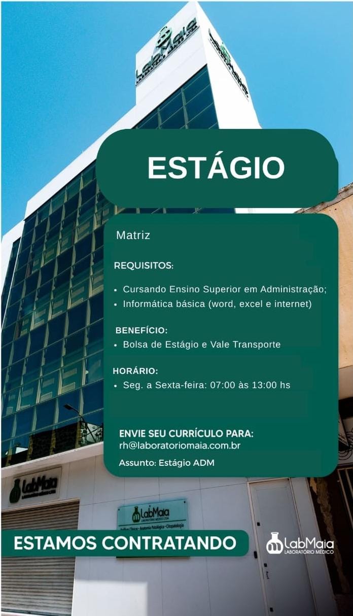 Estamos com (01) uma vaga de estágio para nível superior o curso de Administração.