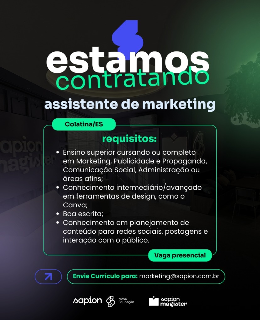 Vaga de Estágio - Marketing para Redes Sociais e Sites Mais detalhes